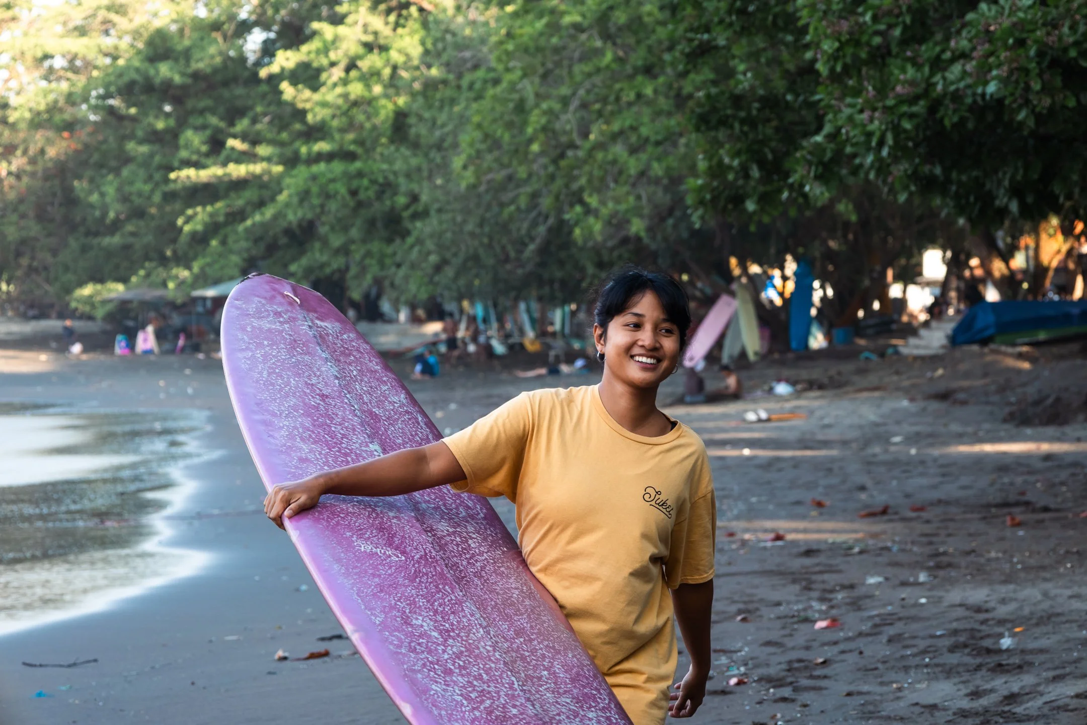 Tra di loro c'è anche Reni, una donna minuta con i capelli schiariti dal sole, quasi biondi. È una delle surfiste più ammirate di Batukaras. Ha iniziato a giocare con le onde e una piccola tavola da surf a soli tre anni, spinta dal fratello, e oggi il mare è la sua vita. La sua passione l'ha portata a conquistare una medaglia d'argento in una competizione nazionale, un traguardo che l'ha segnata come professionista. La sua tenacia e il suo successo sono un faro per le giovani, che vedono in lei la prova che una donna può infrangere le barriere sociali e culturali, affrontare le sfide con coraggio e ambire agli stessi traguardi degli uomini.
